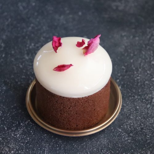 黒い森を意味するフォレノワールをニューモラス風に。中にはなめらかなチョコレートムースと洋酒漬けのグリオットチェリー。マスカルポーネとキル酒のムース。
